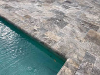 Immerse yourself in the charm of Silver Travertine pool coping, available exclusively from Noda Stone Inc. Featuring distinct silver and gray hues, this pool coping brings an air of elegance to any poolside. Indulge in luxury with the timeless elegance of Noda Stone Inc.'s Silver Travertine pool coping.